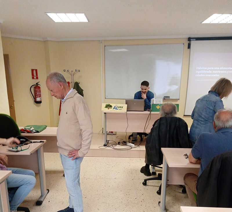 Jueves 7 de abril, tarde en la que da comienzo el curso titulado “Hábitos para una alimentación sana y equilibrada: nutrientes y vitaminas esenciales en edades avanzadas”, impartido y dirigido por Francisco José Corominas Herreros, Graduado en Nutrición Humana y Dietética y con una participación de 18 personas.