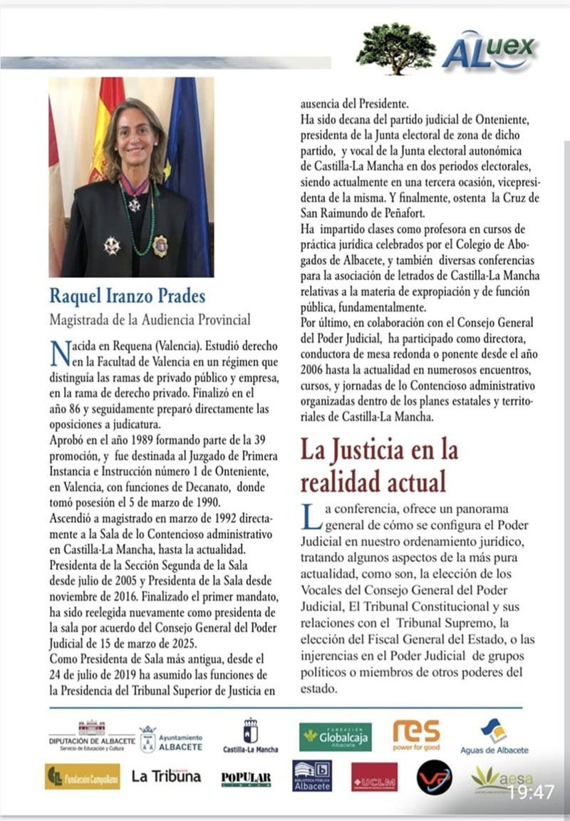 LA JUSTICIA EN LA REALIDAD ACTUAL. Raquel Iranzo Prades. Magistrada de la Audiencia Provincial. Boletín de la conferencia:
