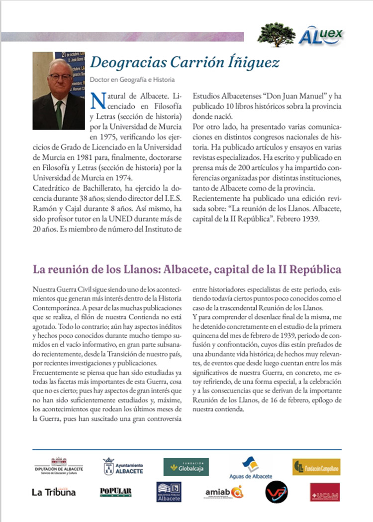 LA REUNIÓN DE LOS LLANOS: ALBACETE CAPITAL DE LA II REPÚBLICA. Deogracias Carrión Íñiguez Doctor en Geografía e Historia.