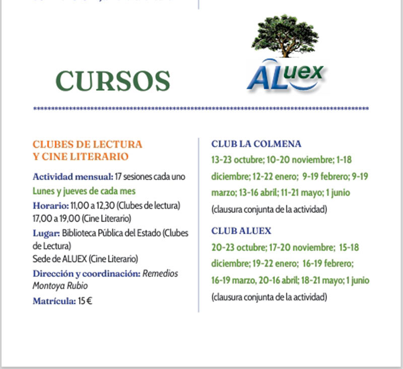 CURSOS, TALLERES Y CLUBES DE LECTURA.