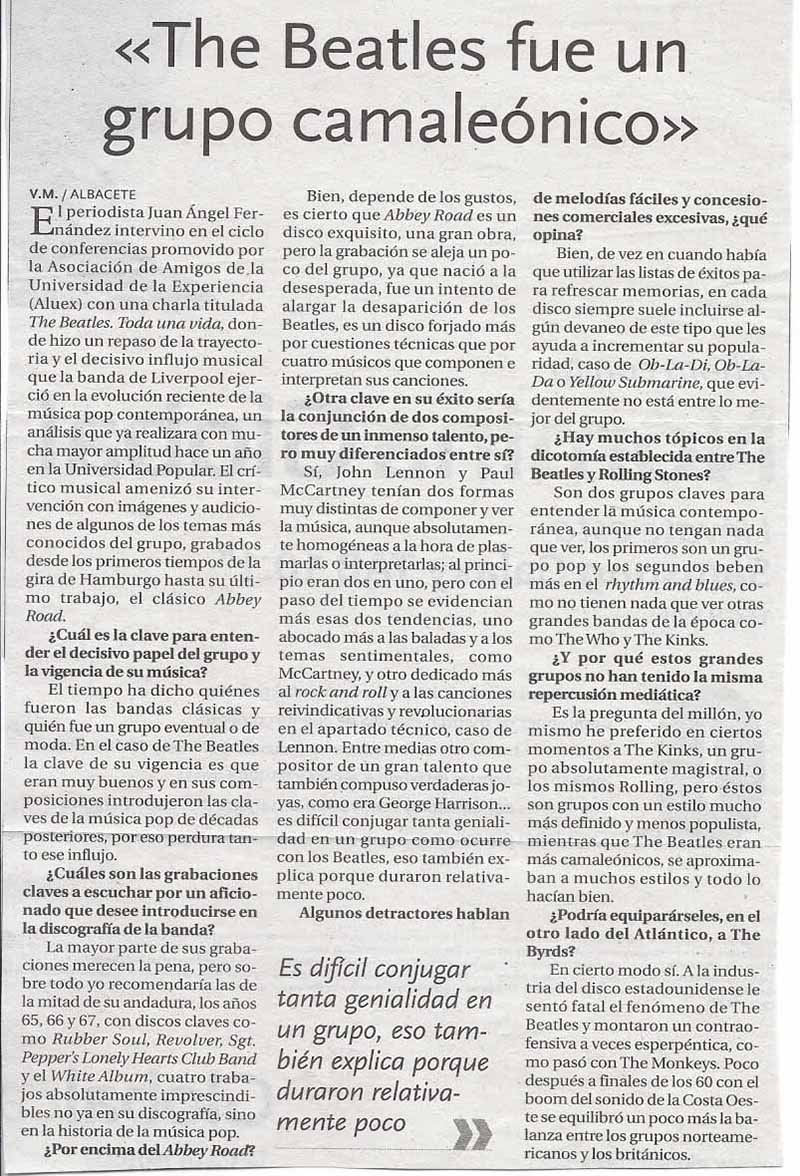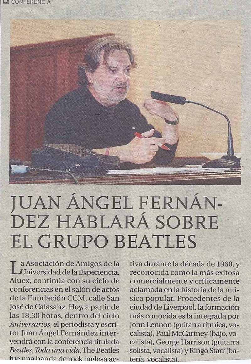 9 diciembre 2013 "The Bleatles. Toda una vida" Conferenciante: D.Juan Ángel Fernández. Periodista y crítico musical.