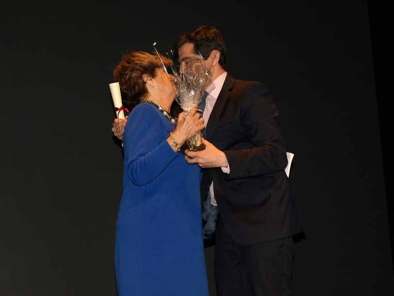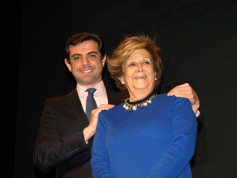 Acompañada por el Alcalde de Albacete Don Javier Cuenca, subió al escenario, donde se le otorgó el premio.