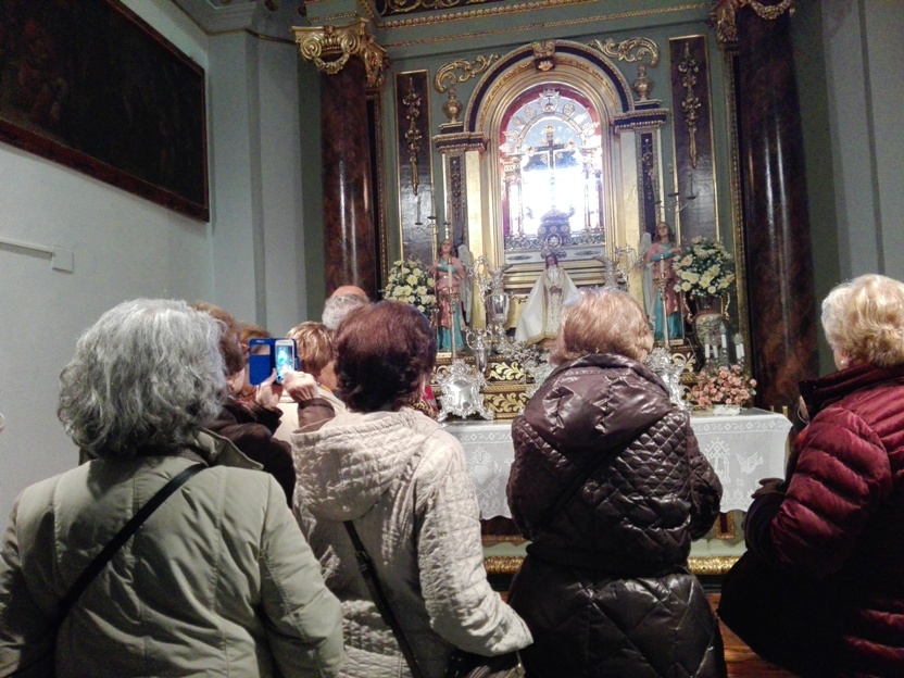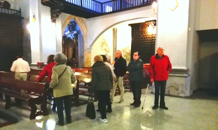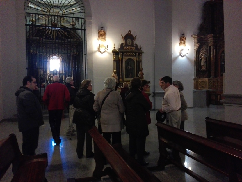 Una visita en la que conocieron el Ayuntamiento, situado en la Plaza Mayor, obra del siglo XVI, o la Oficina de Turismo, pero que se centró en la joya de la localidad, la Iglesia de Santa Catalina, obra del siglo XVIII, construida encima de otra del siglo XVI, que conserva un admirable retablo barroco Churriguresco, en el que se alza Santa Catalina, patrona de la localidad. Además de la visita a la Iglesia, -en la que fueron recibidos por su párroco-, los socios de ALUEX también conocieron el Museo Parroquial, que alberga obras de gran interés, como ·”El Cristo abrazado a la Cruz”, de El Greco; “El Milagro”, de Vicente López; o “La Magdalena”, de Andrea de Sarto.