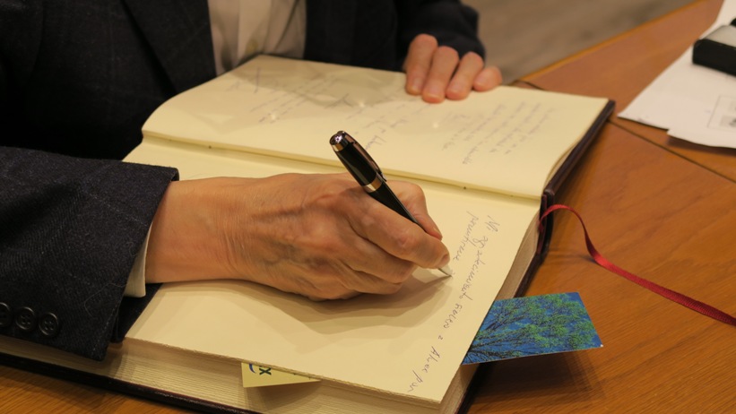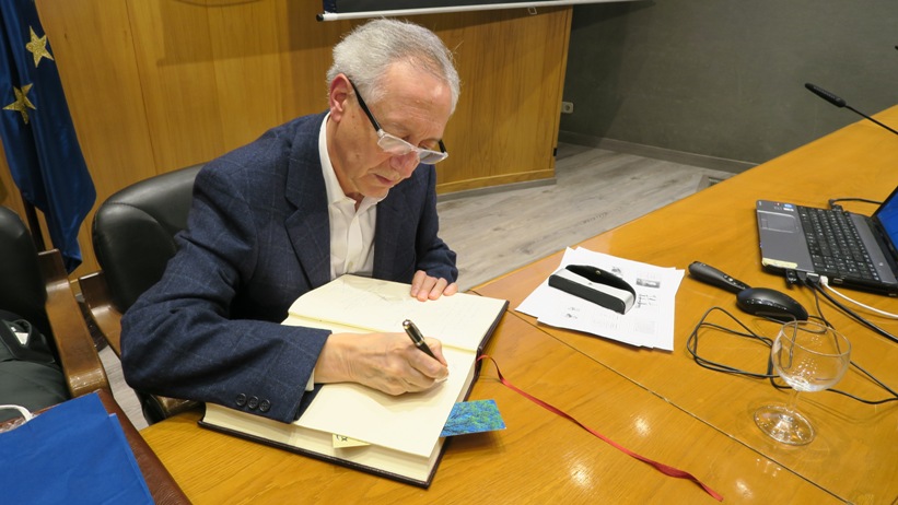 D. Juan Belmonte Guardiola Firmando en el Libro de honor de Aluex Información gráfica del acto Don Juan Belmonte Guardiola