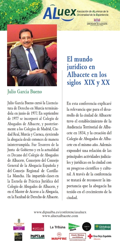Conferencia11ª Lunes, 19 de diciembre 2016 Salón de Actos de la Diputación de Albacete EL MUNDO JURIDICO EN ALBACETE EN LOS SIGLOS XIX Y XX D. Julio García Bueno Presidente del Colegio de Abogados de Albacete Boletín de la conferencia