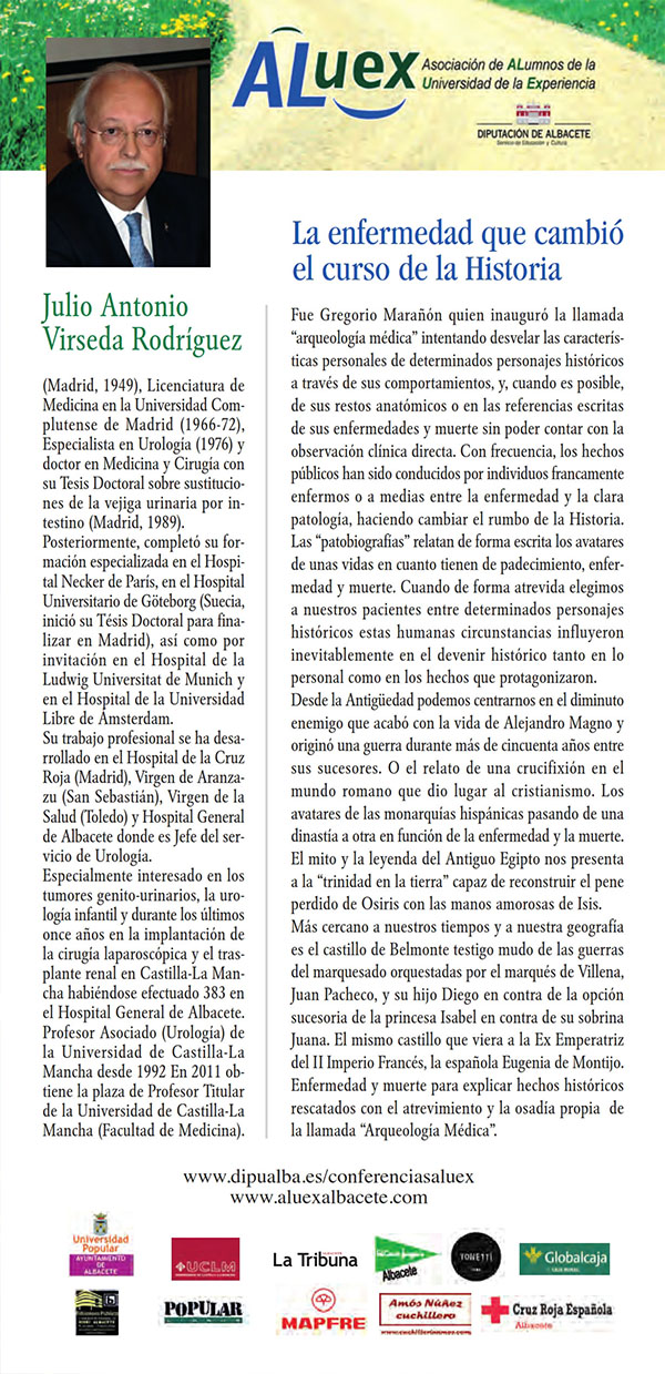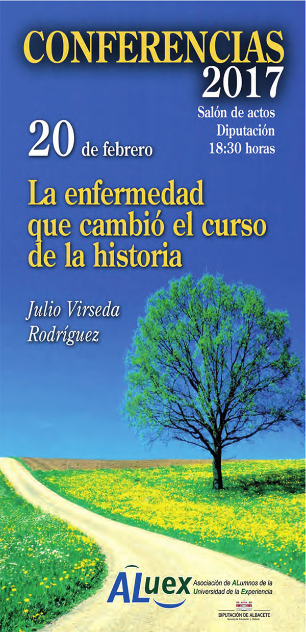 Conferencia 18ª Lunes, 20 de febrero 2017 LA ENFERMEDAD QUE CAMBIÓ EL CURSO DE LA HISTORIA D.Julio Virseda Rodríguez Catedrático de Urología de la UCLM Boletín informativo