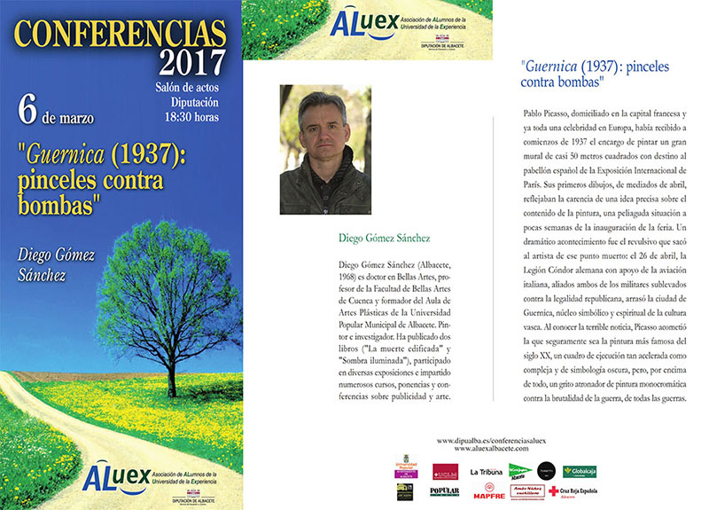 Conferencia 20ª Lunes, 6 de marzo 2017 GUERNICA 1937: PINCELES CONTRA BOMBAS D. Diego Gómez Sánchez Doctor en Bellas Artes y Profesor de la UCLM y de la UP de Albacete. Boletín informativo