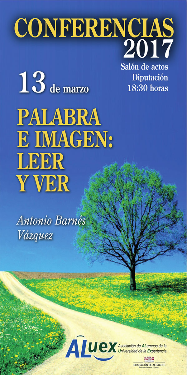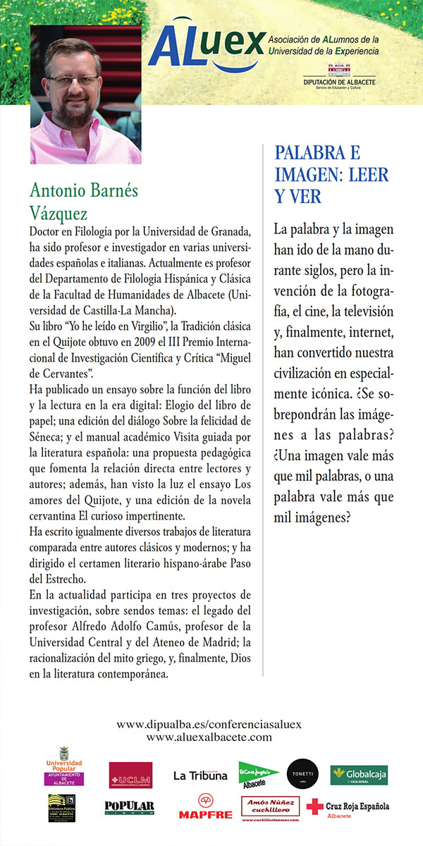 Conferencia 21ª Lunes, 13 de marzo 2017 PALABRA E IMAGEN: LEER Y VER D. Antonio Barnés Vázquez Profesor asociado del departamento de Filología Hispánica y Clásica en la Facultad de Humanidades de la UCLM Boletín Informativo