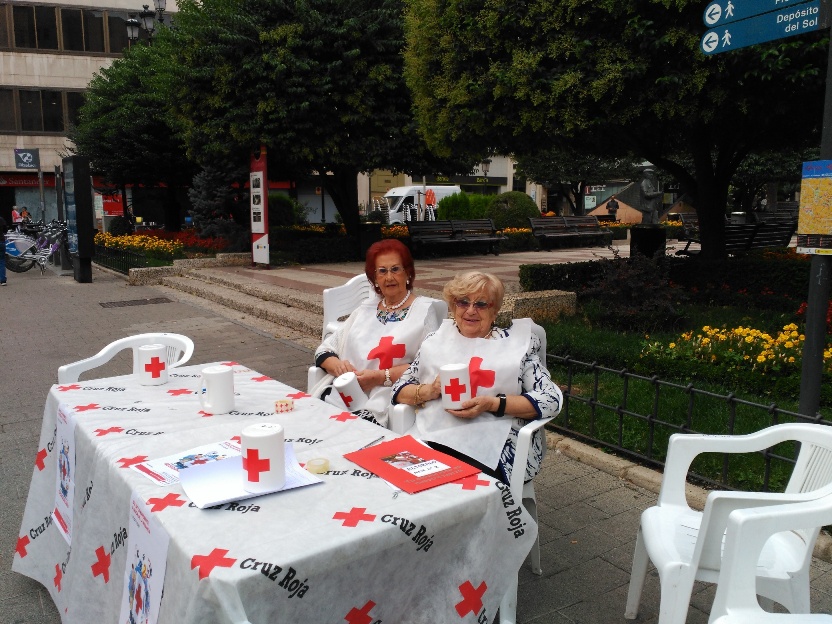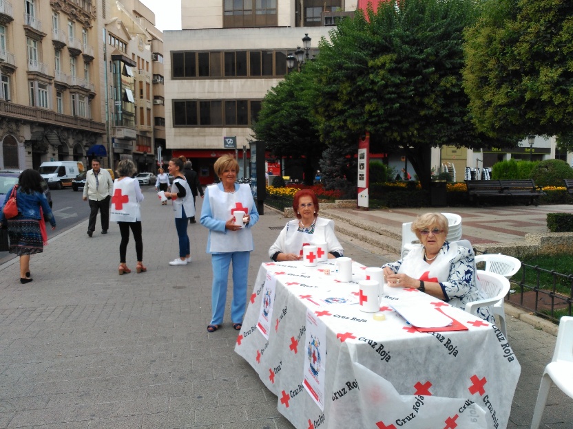 Están colaborando en una mesa petitoria colocada en la Plaza del Altozano.