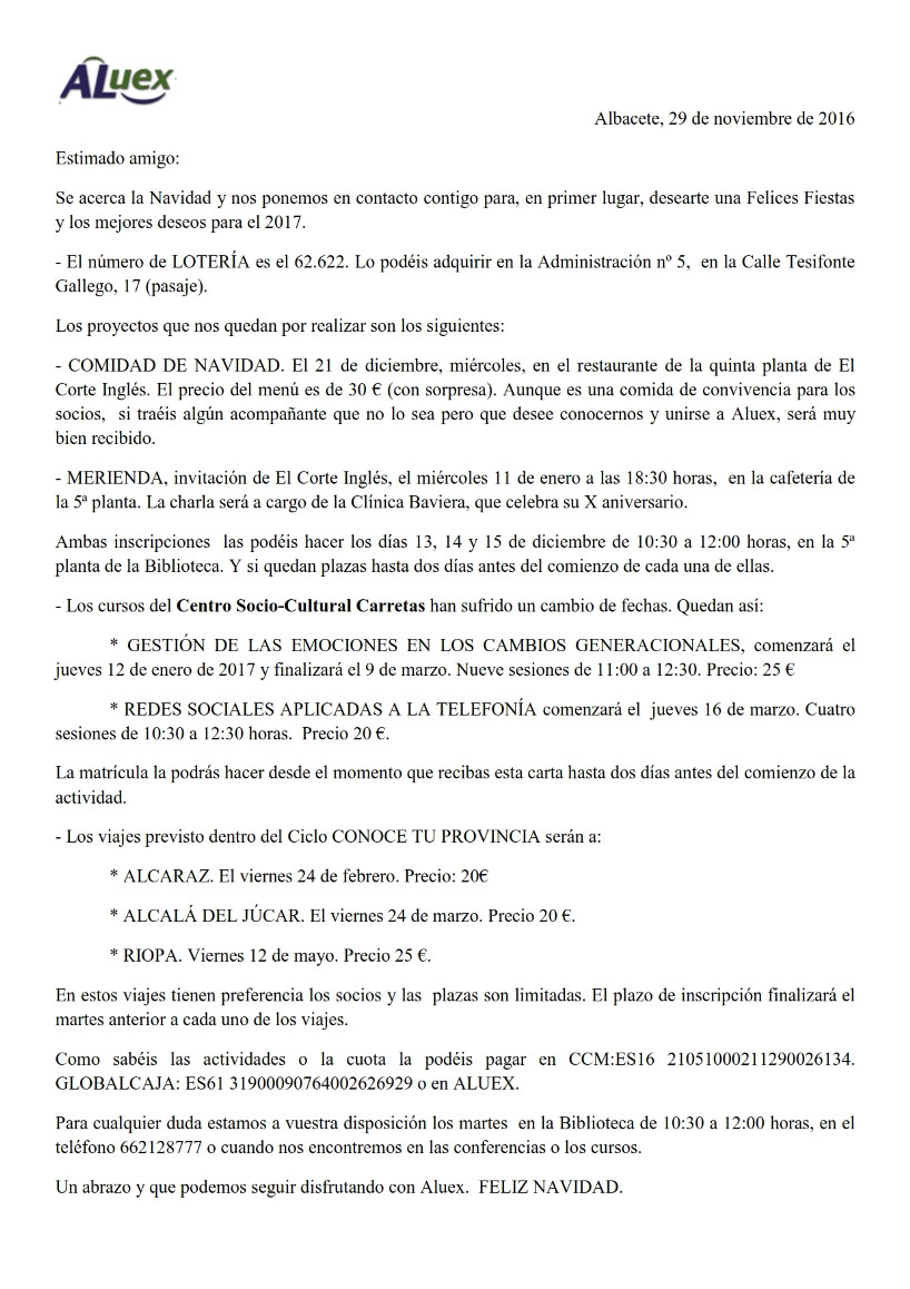 CARTA DE NAVIDAD A LOS SOCIOS.