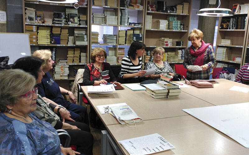 Las componentes del Club de lectura "La Colmena" hicieron un obsequio con todo cariño a su monitora, Teresa Sandoval Parrado, con motivo de su próxima boda, deseándole la mayor dicha.La presidenta Carmen Rosa Martínez Orellana, le hizo entrega del símbolo de Aluex felicitándola