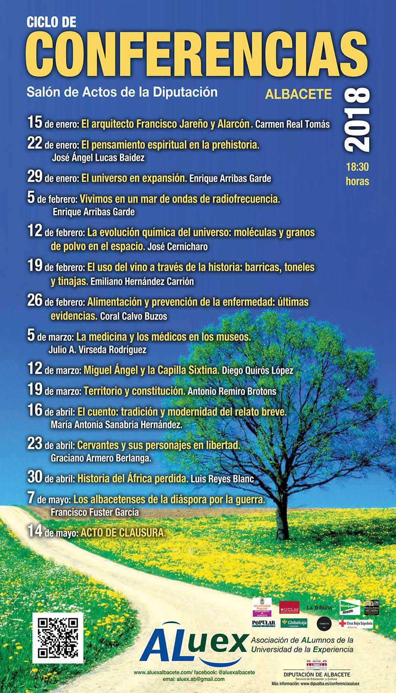 1 de enero 2018 Cartel colocado en la Diputación Albacete Anunciando las conferencias pendientes del año 2018