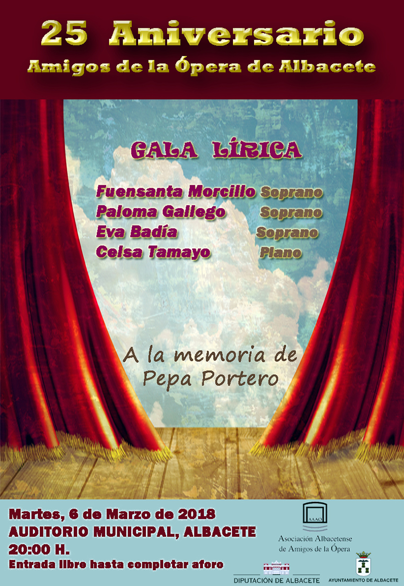 6 de marzo 2018 Concierto organizado por los AMIGOS DE LA OPERA DE ALBACETE Con motivo de su 25 aniversario. dedicado a la memoria de: PEPA PORTERO (También socia de Aluex)