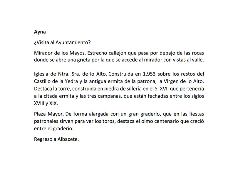 24 de mayo 2018 VIAJE CULTURAL A LA SIERRA DE ALBACETE (Bogarra y Ayna) Organizado por ALUEX para sus socios.