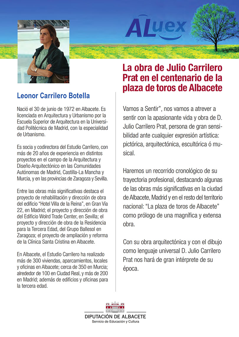 30 de octubre 2017: Conferencia número 3 “LA OBRA DE JULIO CARRILERO PRAT, EN EL CENTENARIO DE LA PLAZA DE TOROS DE ALBACETE”. Dª. Leonor Carrilero Botella. Arquitecta. Ver boletín informativo Conferencia
