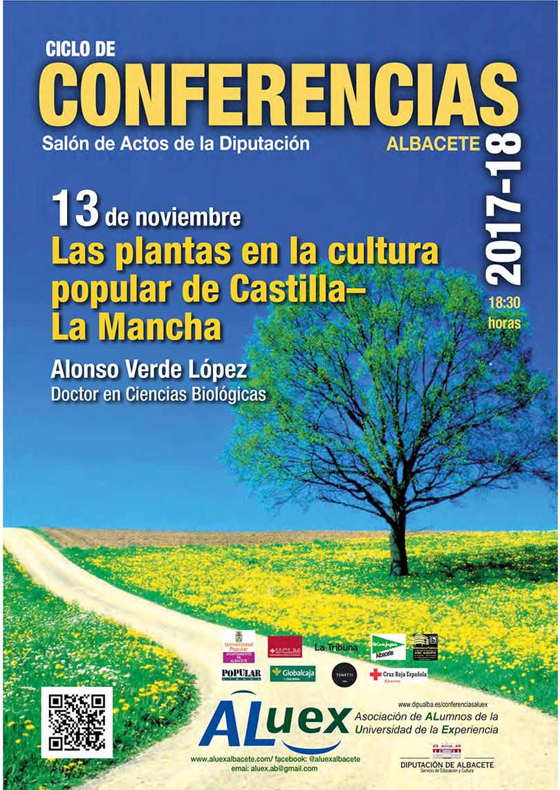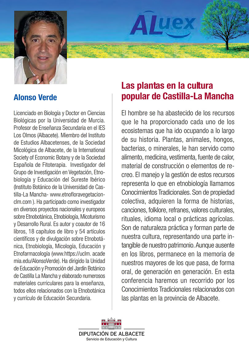 13 de noviembre 2017: Conferencia número 5: “LAS PLANTAS EN LA CULTURA POPULAR DE CASTILLA – LA MANCHA”. D. Alonso Verde López. Doctor en Ciencias Biológicas.