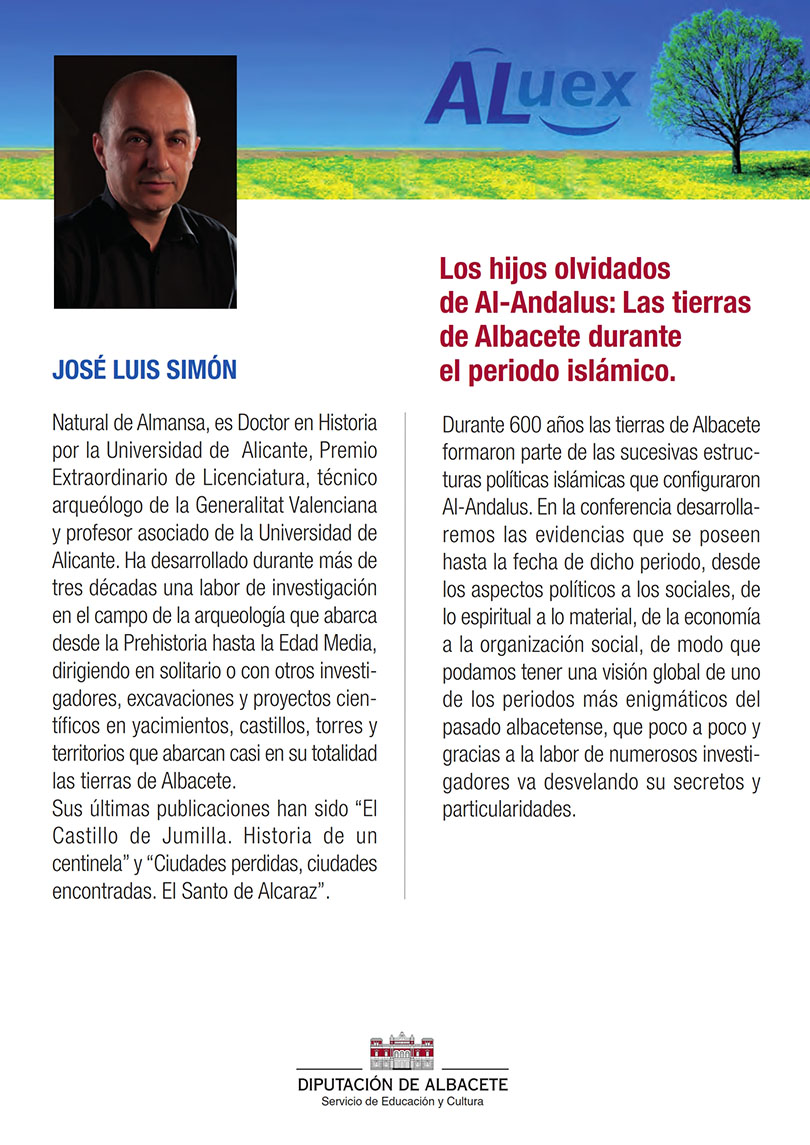 20 de noviembre: Conferencia número 6 “LOS HIJOS OLVIDADOS DE ALBACETE: LAS TIERRAS DE ALBACETE DURANTE EL PERIODO ISLÁMICO. D. José Luis Simón García. Doctor en Historia. Ver boletín de la conferencia