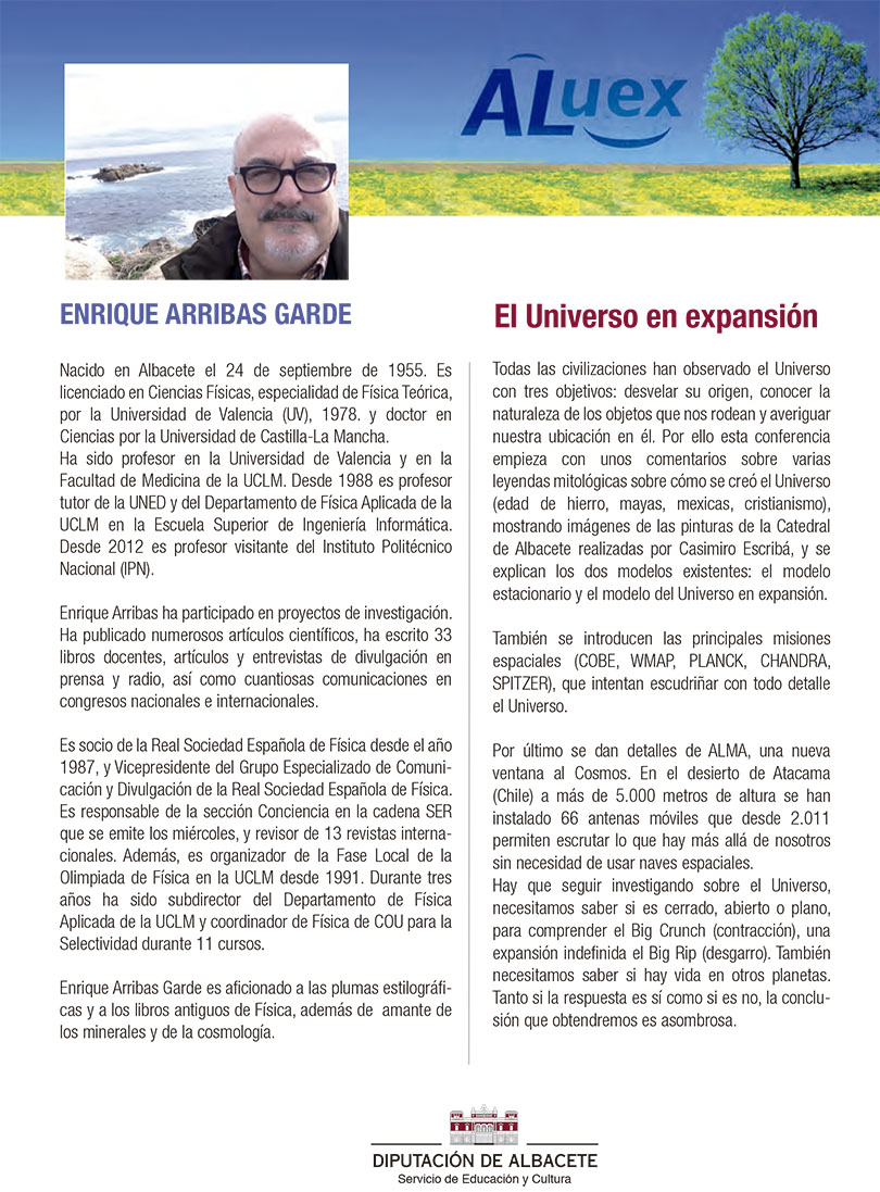Lunes 29 de enero 2018 conferencia número 13 “EL UNIVERSO EN EXPANSIÓN”. D. Enrique Arribas Garde. Doctor en Ciencias Físicas. Ver boletín de la conferencia