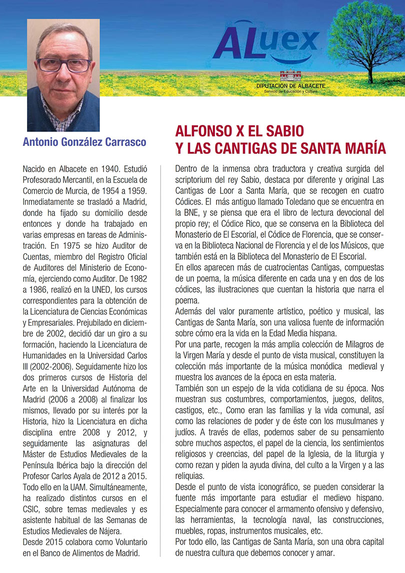 "ALFONSO X EL SABIO Y LAS CANTIGAS DE SANTA MARÍA" D. Antonio González Carrasco Licenciado en Historia y Humanidades. Ver Boletín de la conferencia