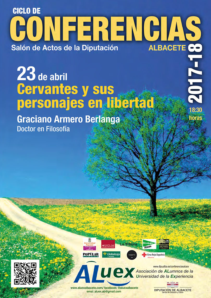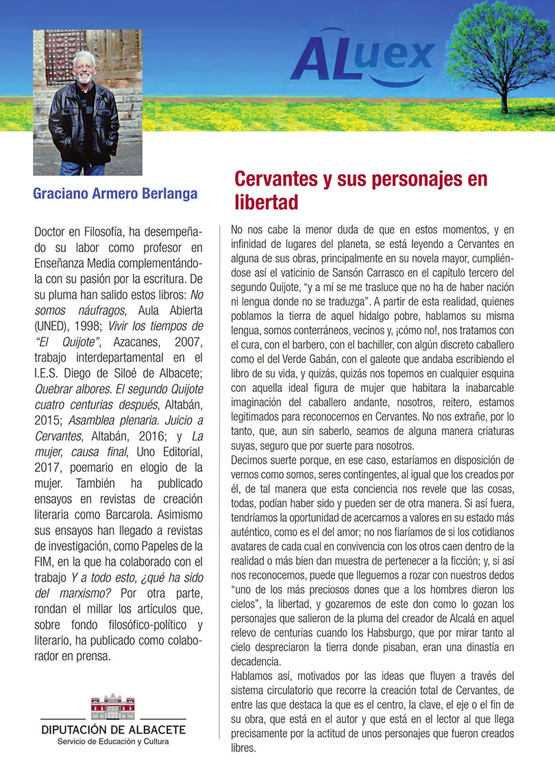 “CERVANTES Y SUS PERSONAJES EN LIBERTAD”. (Día del libro). D. Graciano Armero Berlanga. Doctor en Filosofía Hoja informativa de la conferencia