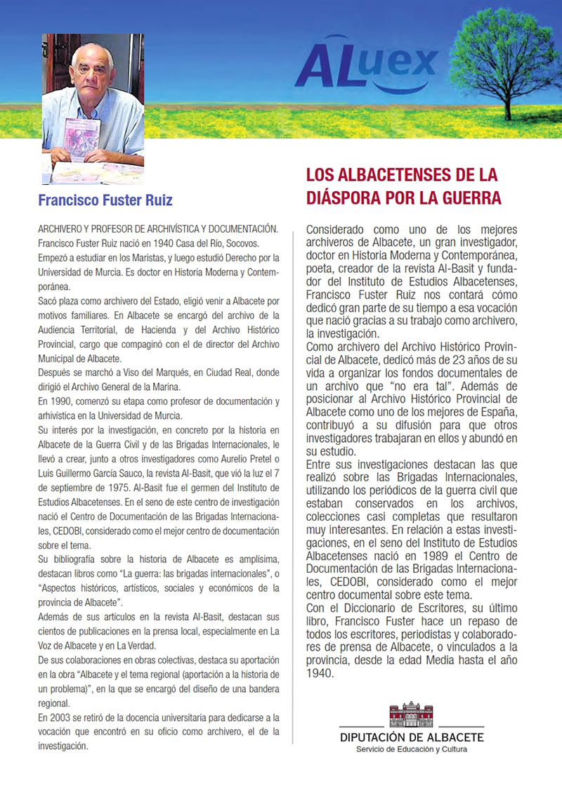 “LOS ALBACETENSES DE LA DIASPORA POR LA GUERRA”. D. Francisco Fuster Ruiz Archivero y profesor.