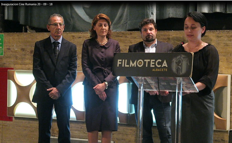 Mª Ángeles Martínez que ha agradecido la visita de la embajadora a nuestra ciudad durante este ciclo de cine Rumano, ha dicho que la Filmoteca es un nido de cultura audiovisual para todos los albaceteños muy vivo en el que se ofrece una programación muy variada a lo largo de todo el año, y que después de la Feria ha continuado con este ciclo que es el preludio de próximos ciclos como el dedicado a Jacques Tati, o a los clásicos de culto de la Warner Bros, así como una retrospectiva completa del cine de nuestro paisano José Luis Cuerda, entre otros.