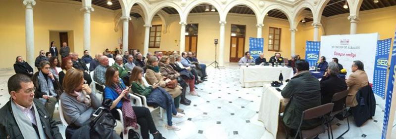 | 12 de enero 2019 ALUEX INVITADA A El pasado sábado, 12 de enero, Carmen Panadero Herrero, vicepresidenta de ALUEX, y Estela Molina Pantiga, asistieron a la emisión en directo del programa de radio Coloquios del vino de Castilla-La Mancha en el Centro Cultural La Asunción, en el que estuvo de invitado especial el presidente de la Diputación Provincial de Albacete, Santiago Cabañero.
