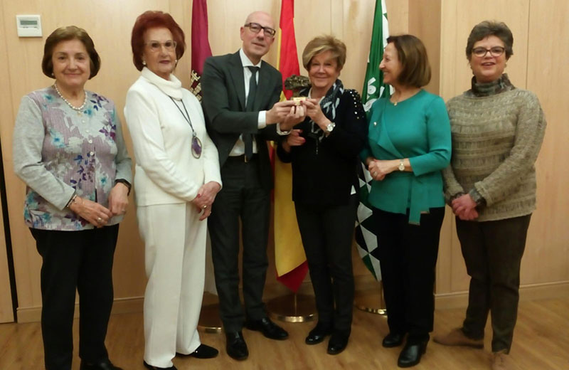 La presidenta de Aluex, además de agradecerle la colaboración que todos los años esta empresa tiene con Aluex, le ha entregado una memoria de los trabajos de este último año, así como nuestro símbolo EL ARBOL DE ALUEX.