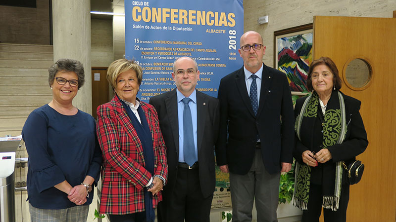 Miembros de la Junta directiva de Aluex, el presidente de Cruz Roja Albacete y el conferenciante.