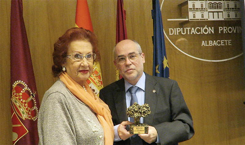 Carmen Panadero Vicepresidenta de Aluex entregando el "Arbol Aluex"