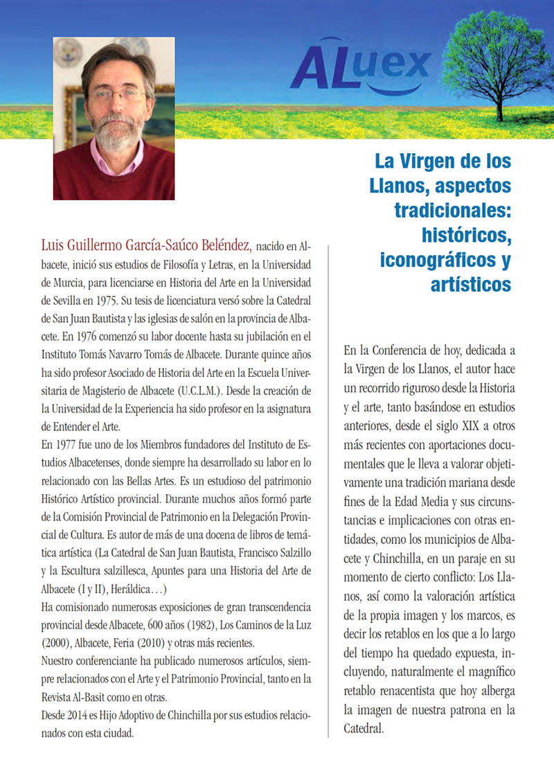Conferencia número 8 10 de diciembre: “LA VIRGEN DE LOS LLANOS, ASPECTOS TRADICIONALES: HISTÓRICOS, ICONOGRÁFICOS Y ARTÍSTICOS”. D. Luis Guillermo García-Saúco Beléndez. Historiador.