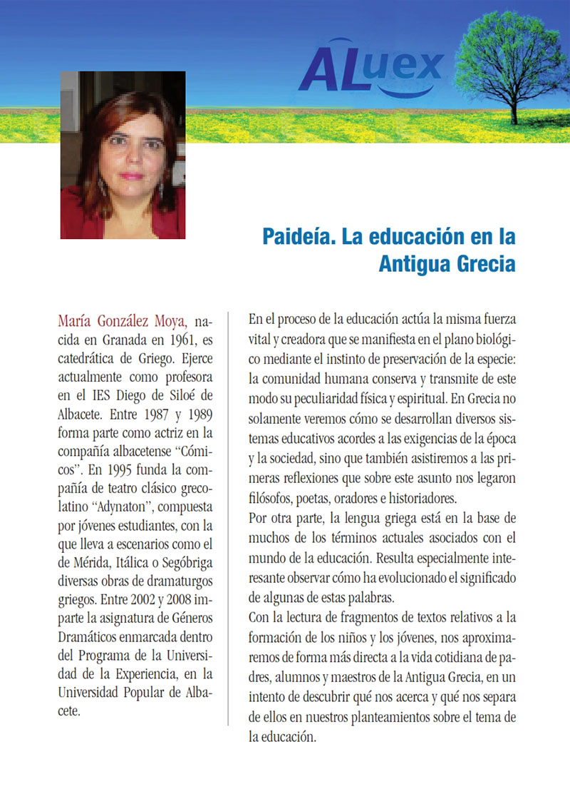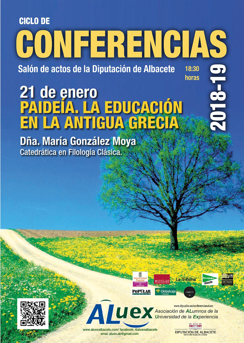 Conferencia número 11 21 de enero 2019: “PAIDEÍA. LA EDUCACIÓN EN LA ANTIGUA GRECIA”. Dña. María González Moya. Catedrática en Filología Clásica.