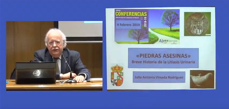 Conferencia número 13 día 4 de febrero 2019: “PIEDRAS ASESINAS. BREVE HISTORIA DE LA LITIÁSIS URINARIA”. D. Julio A. Virseda Rodríguez. Catedrático de Urología