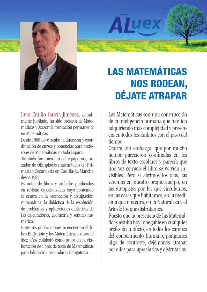 11 de febrero: “LAS MATEMÁTICAS NOS RODEAN. DÉJATE ATRAPAR”. D. Juan Emilio García Jiménez. Matemático.