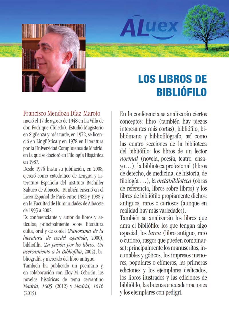 “LOS LIBROS DEL BIBLIÓFILO”. D. Francisco Mendoza Díaz-Maroto. Doctor en Filología Hispánica.