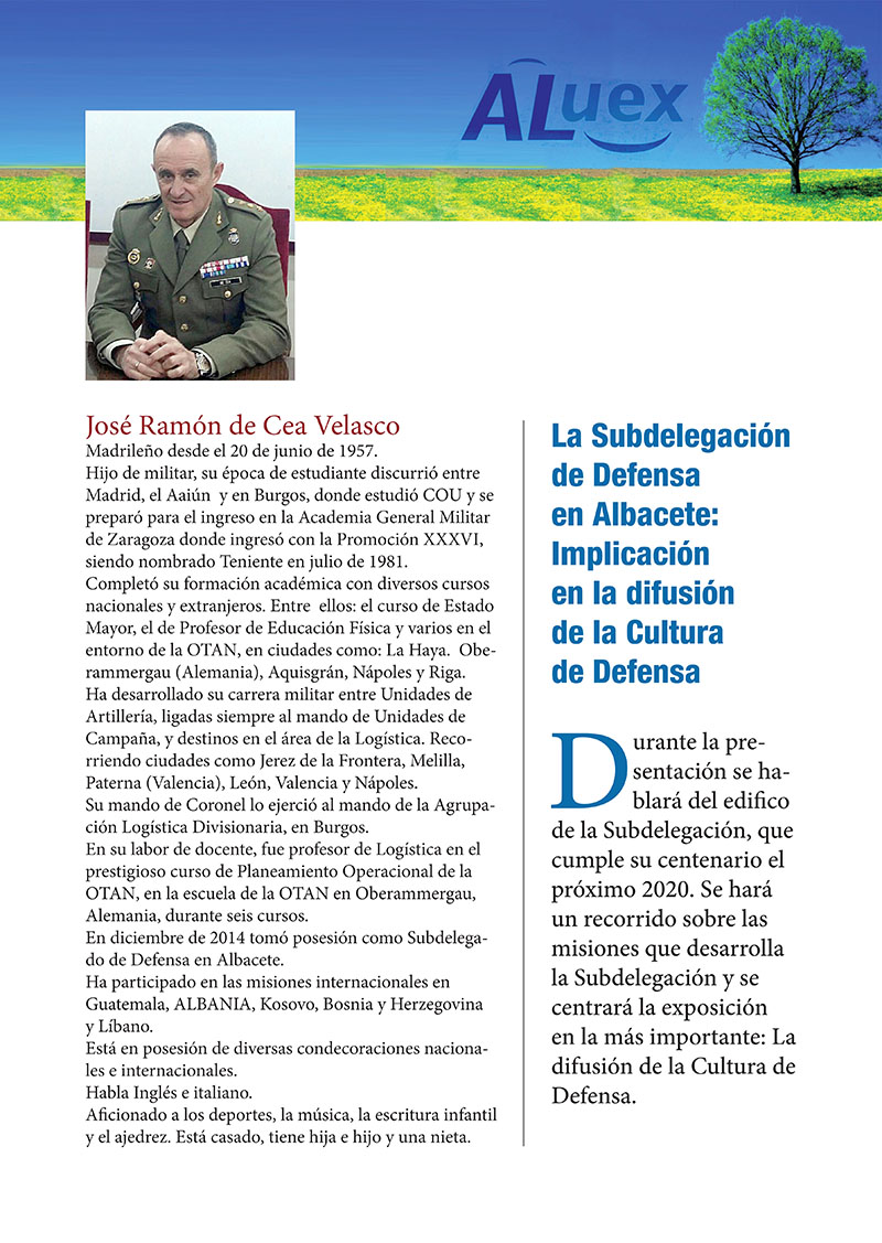 "LA SUBDELEGACIÓN DE DEFENSA EN ALBACETE: IMPLICACION EN LA DIFUSIÓN DE LA CULTURA DE DEFENSA" Don José Ramón de Cea Velasco Coronel E.T. Subdelegado de Defensa en Albacete