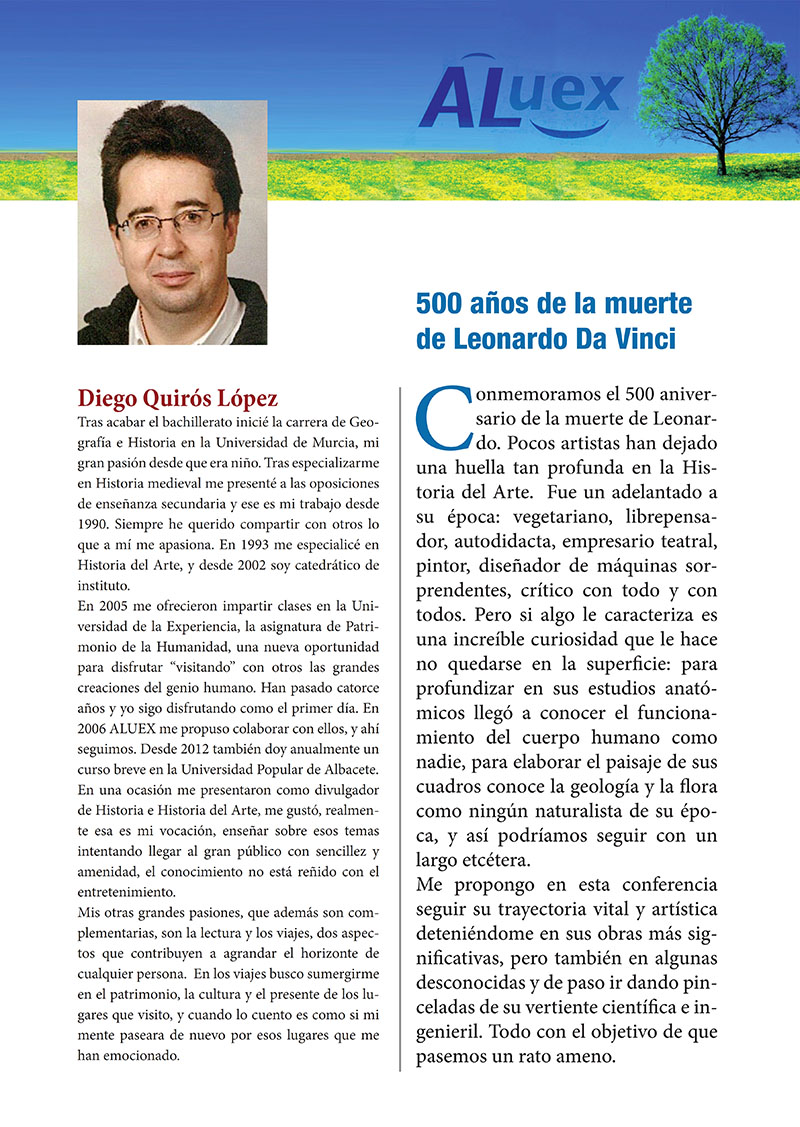 "QUINIENTOS AÑOS DE LA MUERTE DE LEONARDO DA VINCI" Don Diego Quirós López Licenciado en Historia del Arte e Historia Medieval