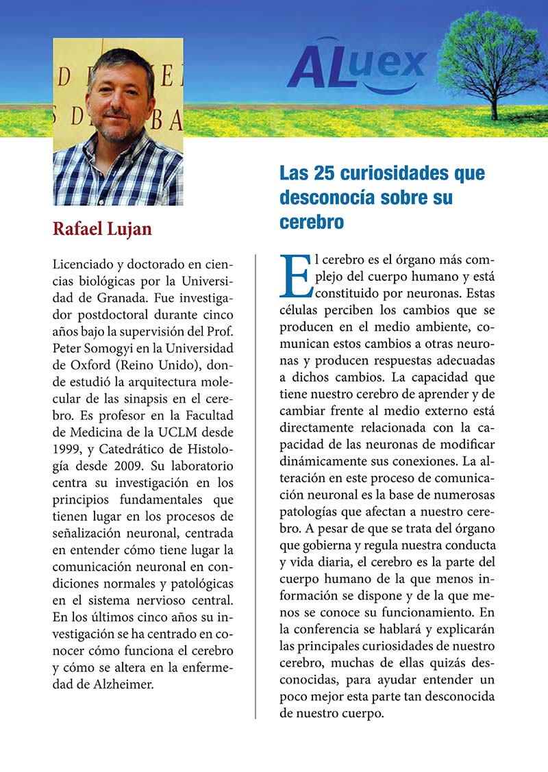 "LAS 25 CURIOSIDADES QUE DESCONOCÍA SOBRE EL CEREBRO" Don Rafael Luján Miras Catedrático de Histología Investigador UCLM.