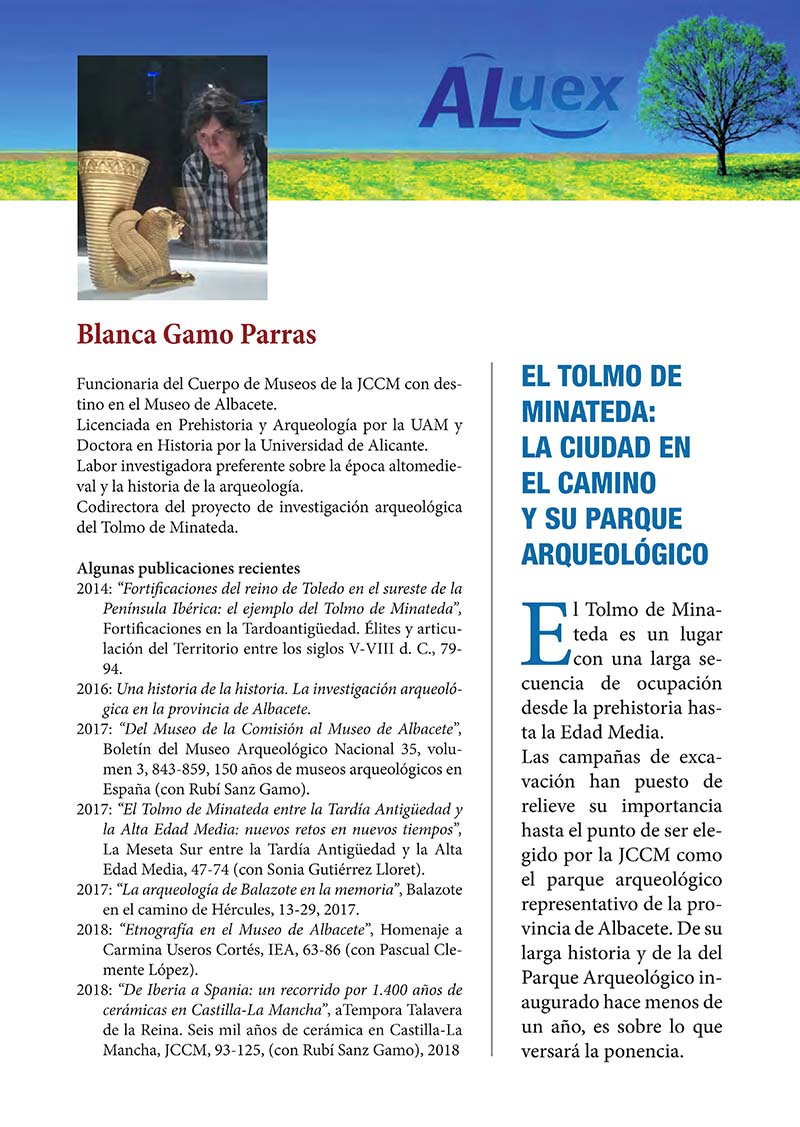 "EL TOLMO DE MINATEDA: LA CIUDAD EN EL CAMINO Y SU PARQUE ARQUEOLÓGICO" Doña Blanca Gamo Parras Doctora en Historia Técnica del Museo de Albacete