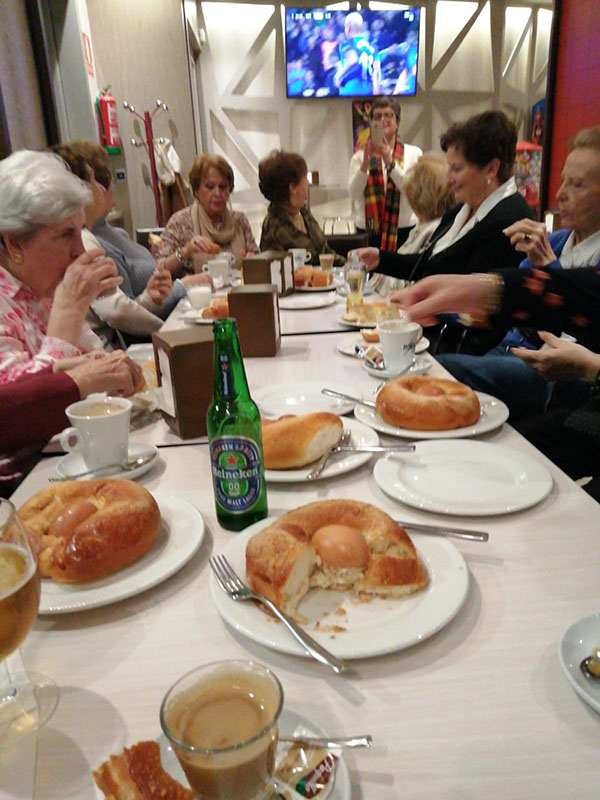 Aluex, VIVE Y DISFRUTA de las tradiciones, como por ejemplo JUEVESLARDERO. Un grupo de socias se juntó para comer la tradicional mona.