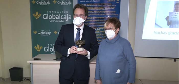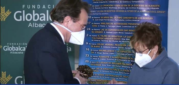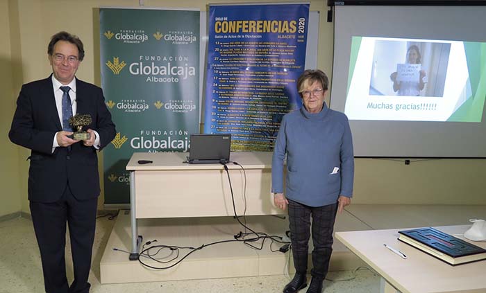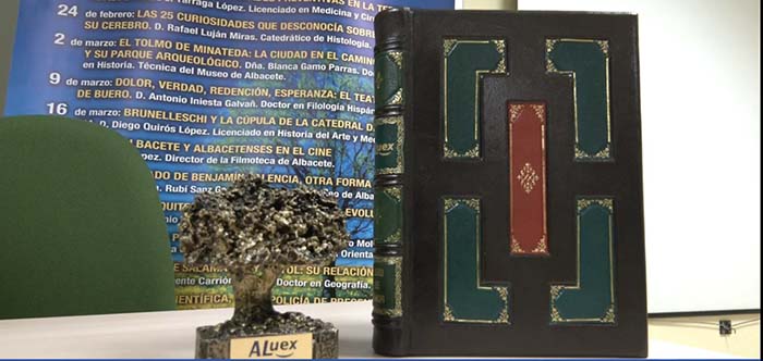 La presidenta de Aluex hizo entrega del Logo-Arbol de Aluex al conferenciante Don Pedro Abizanda.