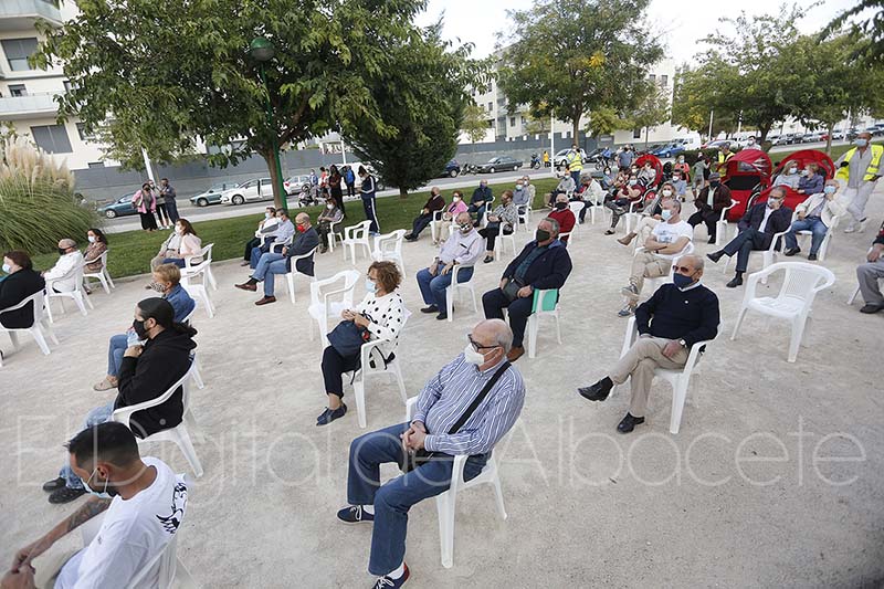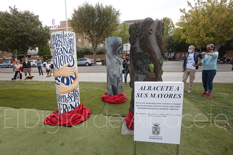 Acto de celebración del día del mayor, se colocaron tres columnas alusivas a los mayores realizadas por tres artistas de Albacete. Acto al que asistieron las autoridades y representantes de algunas asociaciones, como ALUEX, que contó con su presidenta.