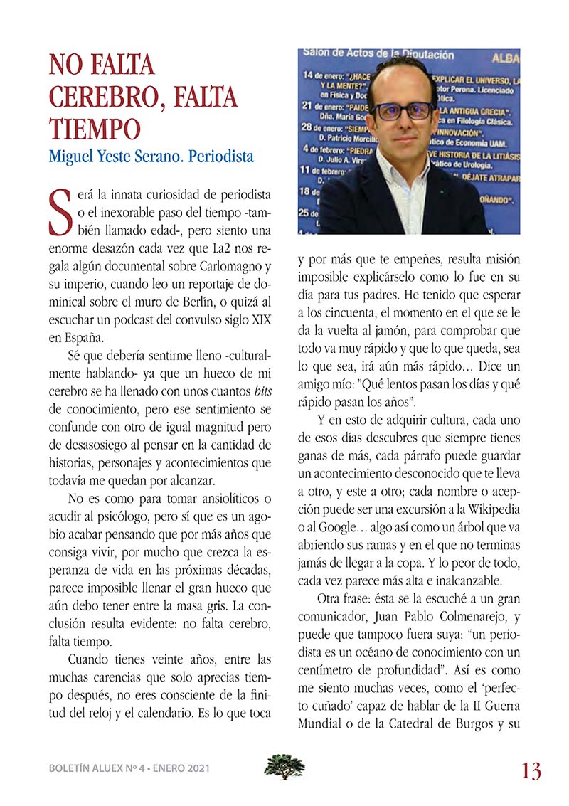 CUARTA REVISTA DE ALUEX EXPERIENCIA, CULTURA Y REALIDAD COLABORACION DE DON MIGUEL YESTE SERRANO.