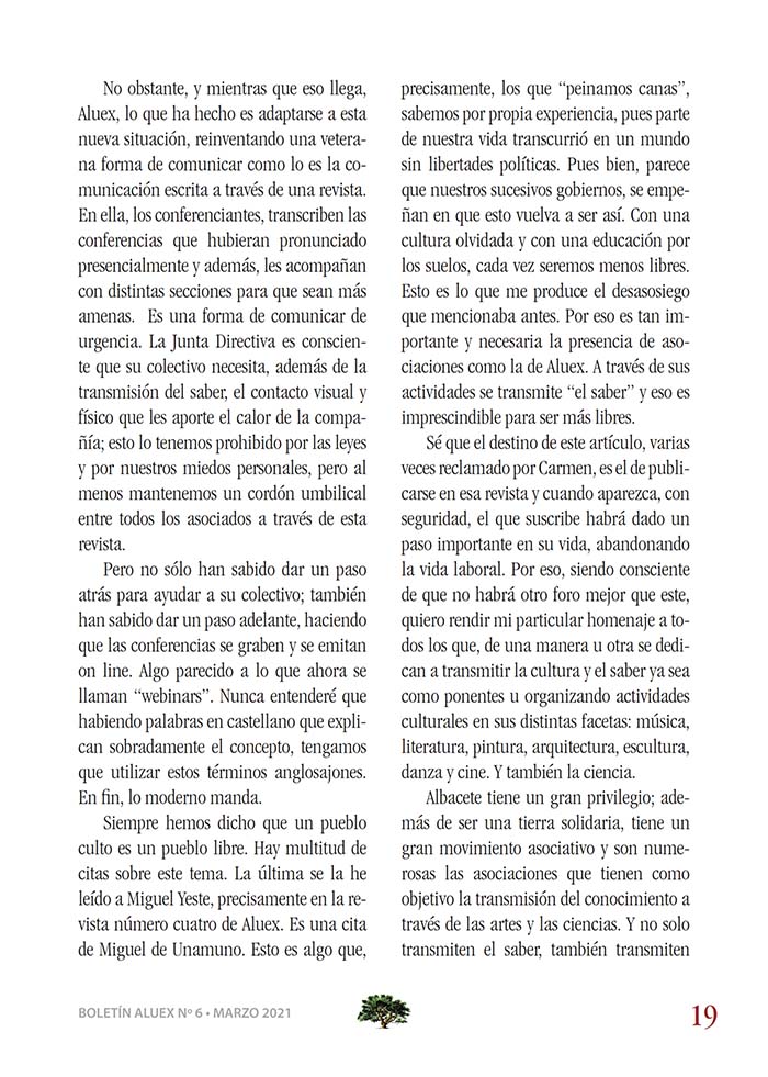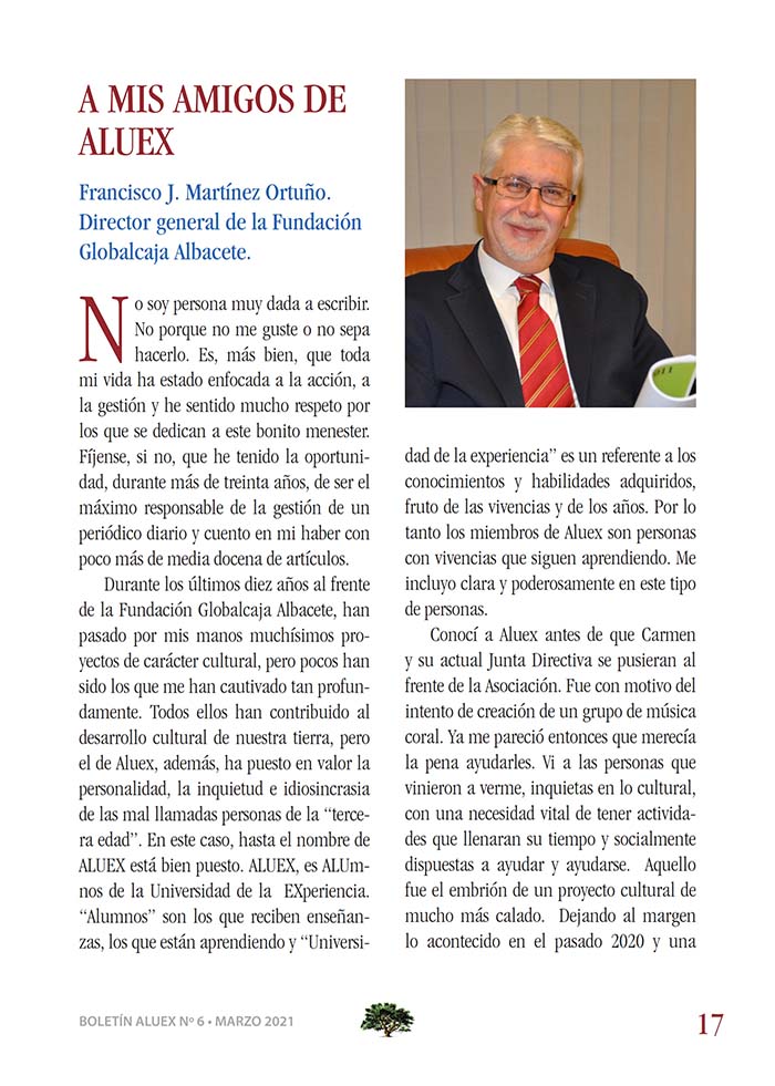 SEXTA REVISTA DE ALUEX EXPERIENCIA, CULTURA Y REALIDAD. Colaboración de Francisco J. Martínez Ortuño