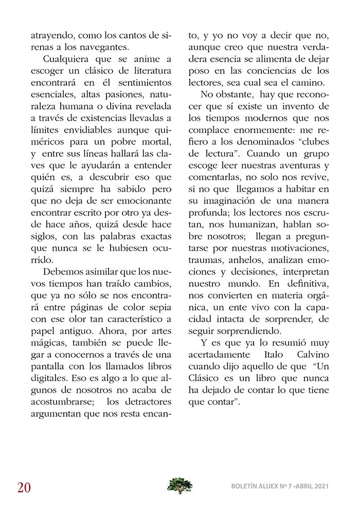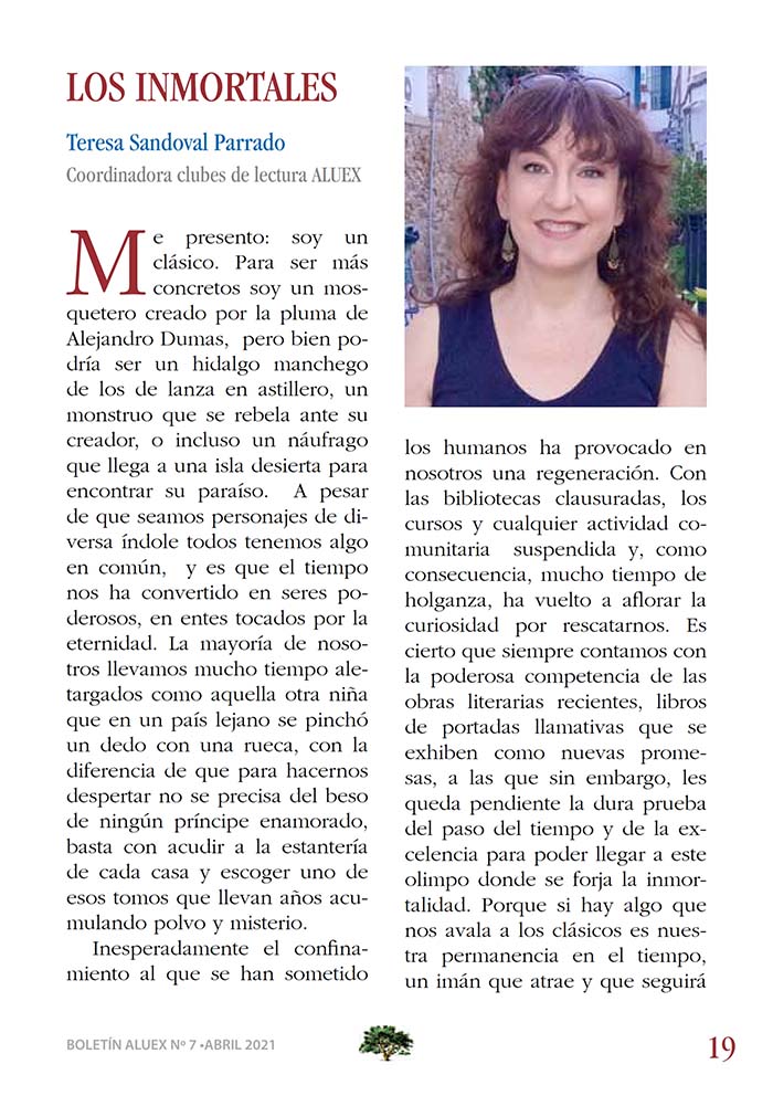 SEPTIMA REVISTA DE ALUEX EXPERIENCIA, CULTURA Y REALIDAD. Colaboración de doña Teresa Sandoval Parrado