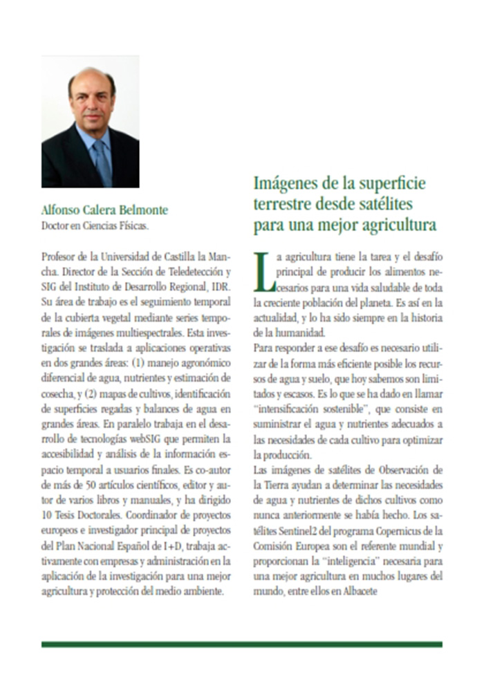 8 de noviembre 2021. 3ª Conferencia. IMAGENES DE LA SUPERFICIE TERRESTRE DESDE SATÉLITES PARA UNA MEJOR AGRICULTURA. Don Alfonso Calera Belmonte. Doctor en Ciencias Físicas.