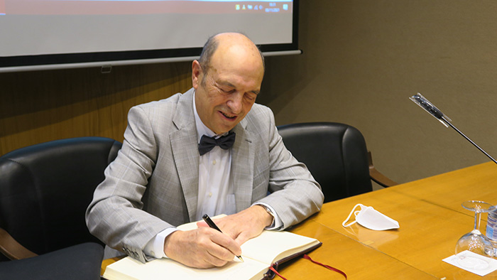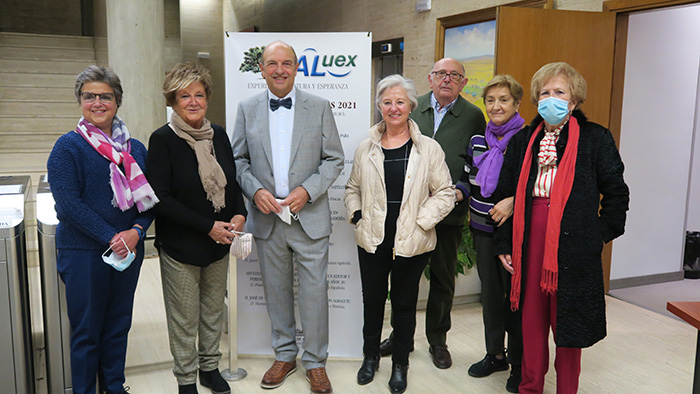 El conferenciante don Alfonso Calera Belmonte y miembros de la Junta Directiva de Aluex