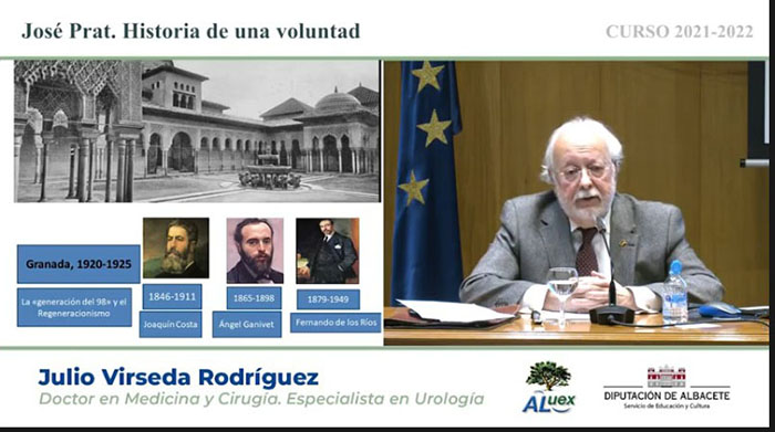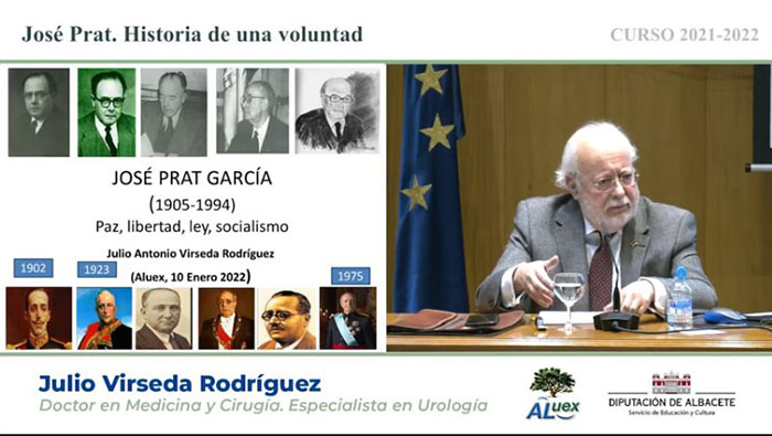 Día 10 de enero 2022. 9ª Conferencia. LO CERCANO, LO NUESTRO. JOSÉ PRAT, HISTORIA DE UNA VOLUNTAD. Don Julio Virseda Rodríguez. Doctor en Medicina y Cirugía. Especialista en Urología. Ver fotogramas de la conferencia ....