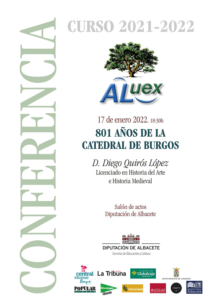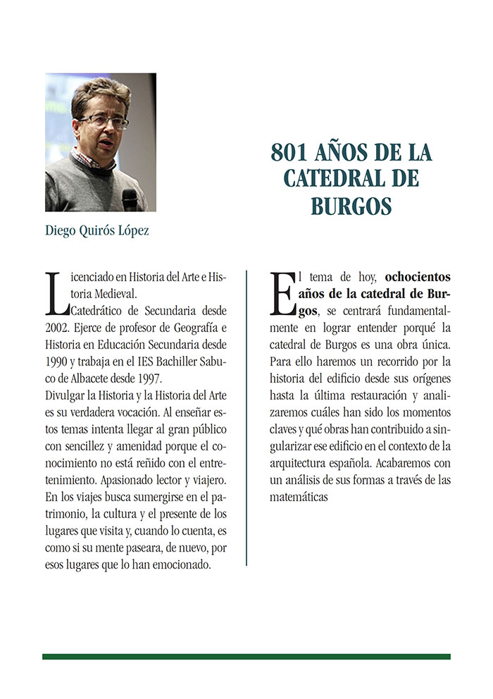 Día 17 de enero 2022. 10ª Conferencia. "ANIVERSARIOS 801 AÑOS DE LA CATEDRAL DE BURGOS. Don Diego Quirós López.. Licenciado en Historia del Arte e Historia Medieval.