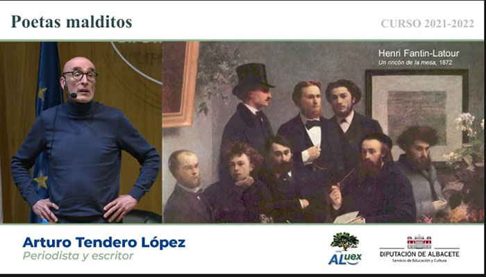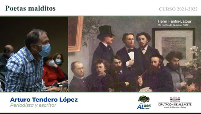 31 de enero 2022. 12ª Conferencia. del ciclo: ALUEX: EXPERIENCIA, CULTURA Y ESPERANZA. En su apartado: ANIVERSARIOS, con el título. "POETAS MALDITOS". Don Arturo Tendero López. Periodista y escritor.
